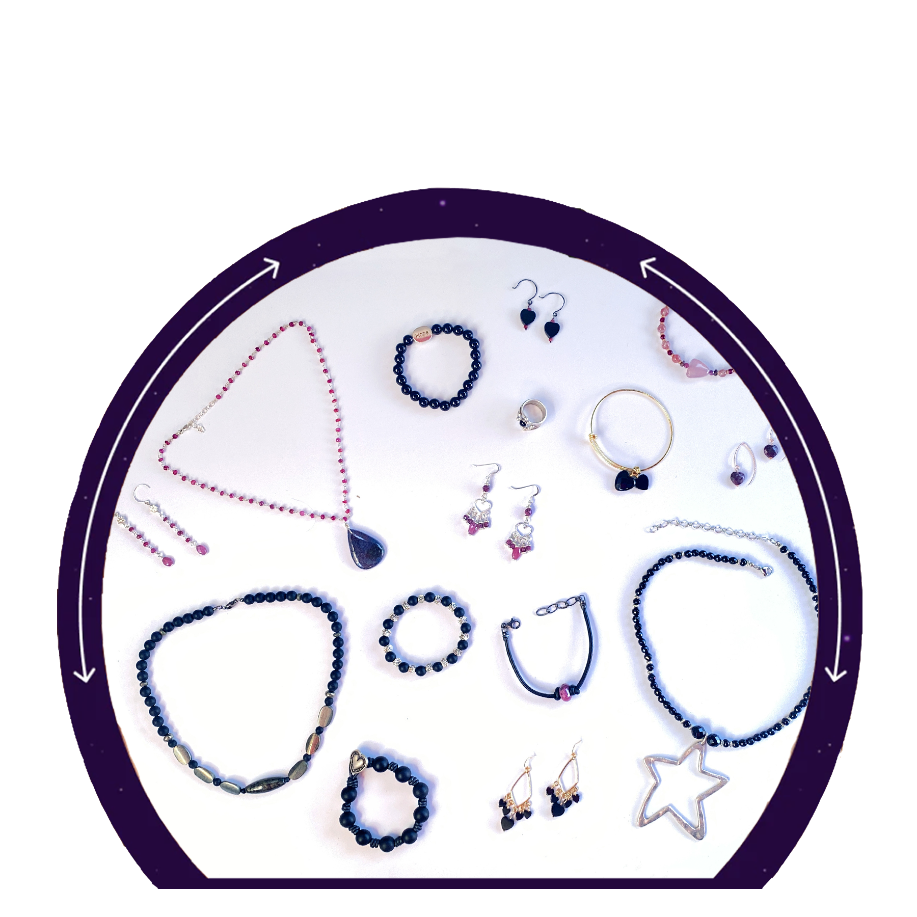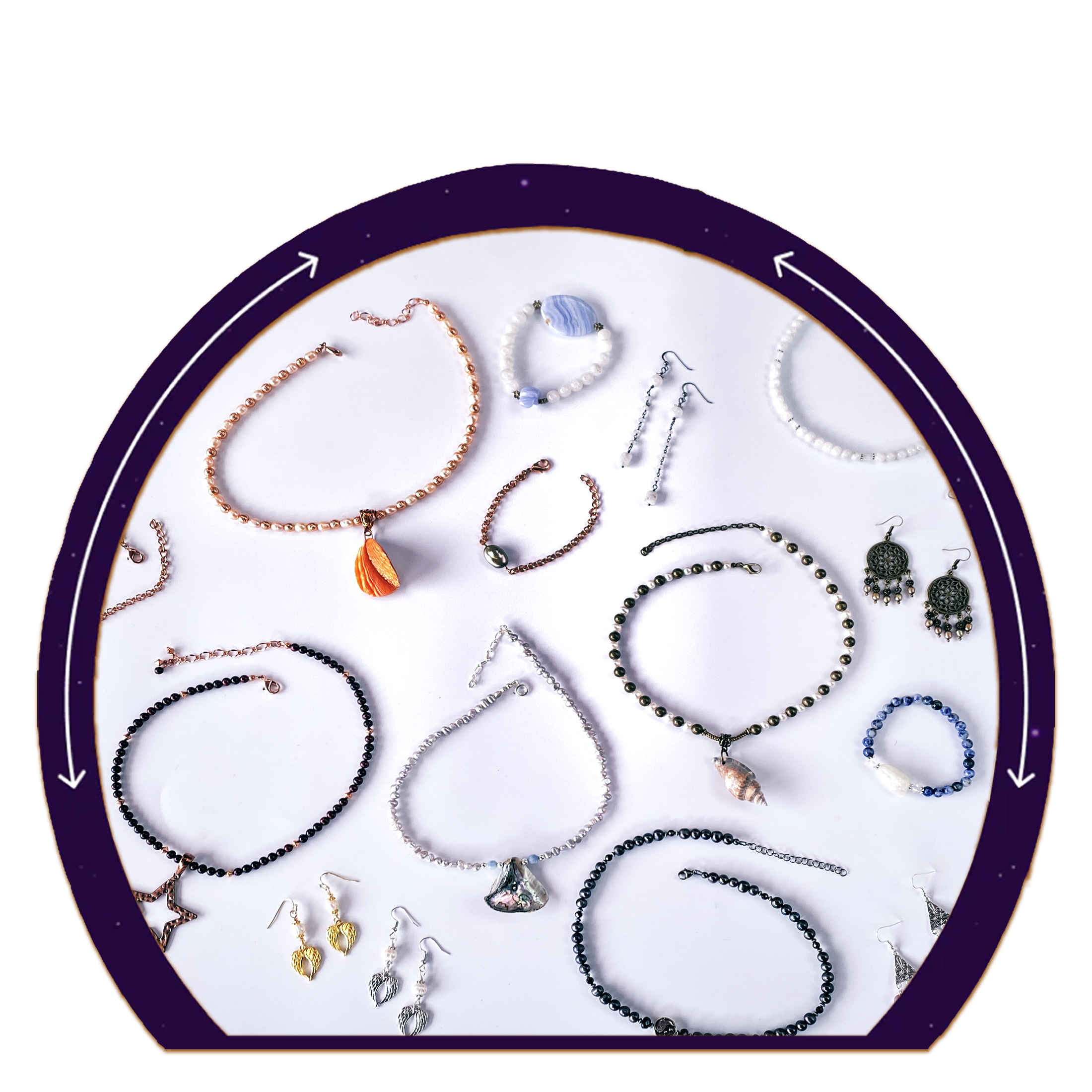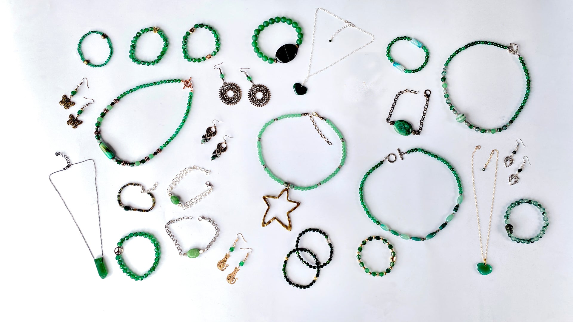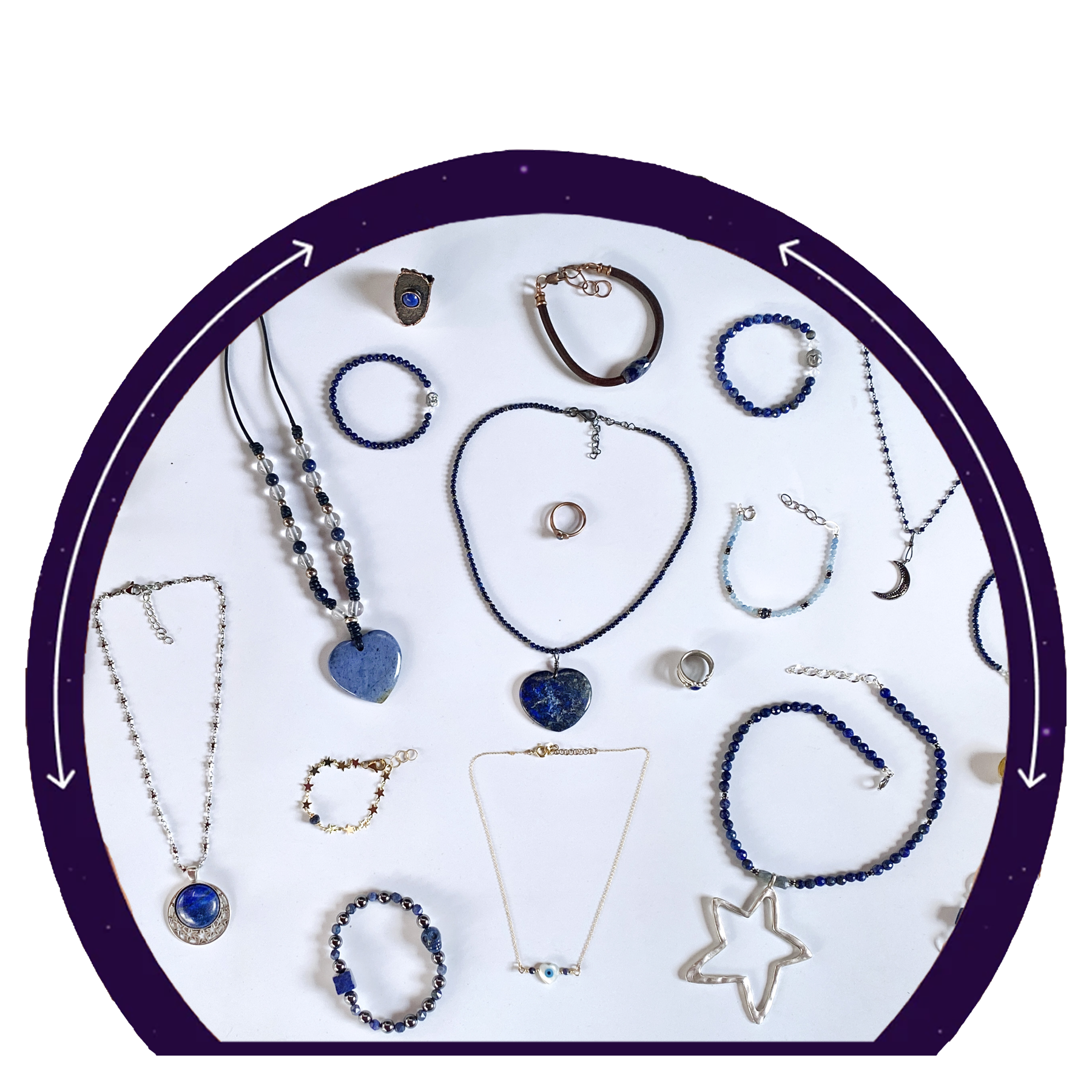 Genuine Gemstone Jewelry for women including beaded Bracelets & Necklaces, Stud and Drop Earrings as well as Anklets. Also Copper, Brass or Silver Chain necklaces with Gemstone Pendants along with Leather Integrated bracelets and necklaces. As well as Handmade rings and gemstone accessories.