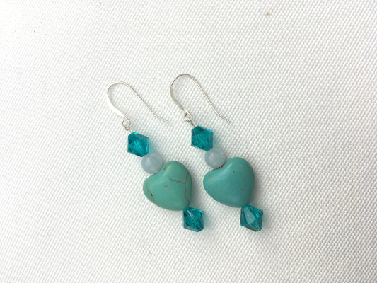 Howlite Gemstone heart & Swarovski crystal sterling silver drop earrings