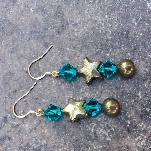 Pyrite & Swarovski Crystal Holiday Earrings, Fusia or Teal