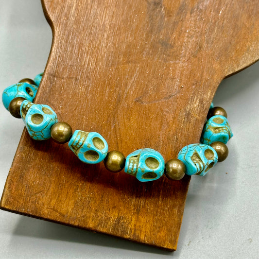 Pumpkin and Onyx gemstone Stretch Bracelet
