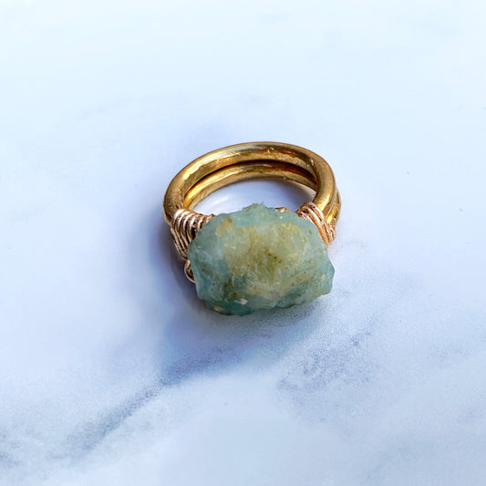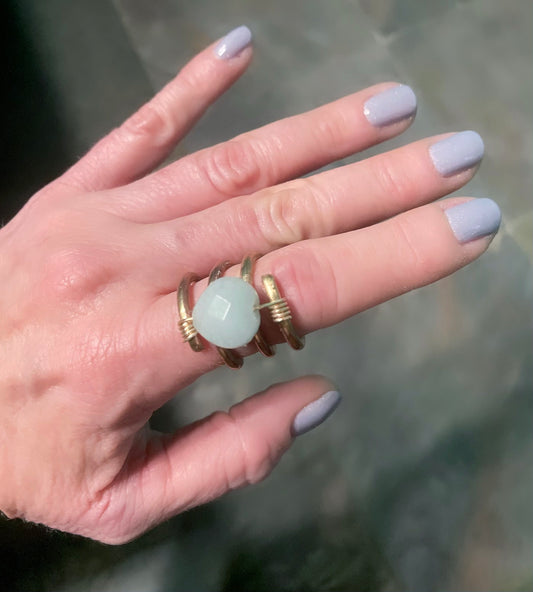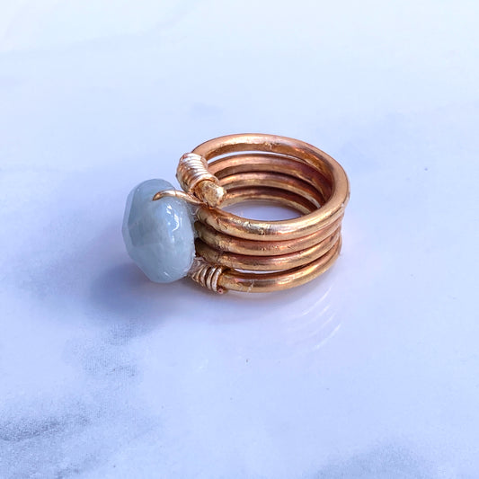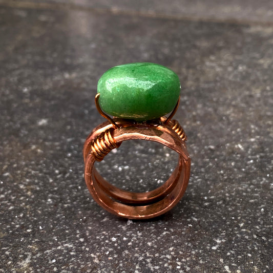 Copper and Sterling Silver Moon Ring with Green Onyx