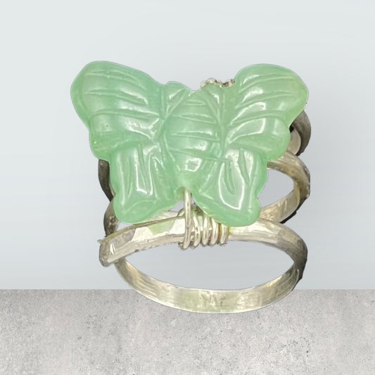 Sterling Silver Green Aventurine gemstone Butterfly Ring
