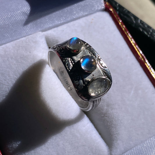 Vintage Sterling Silver Spoon Ring with Moonstone gemstones.
