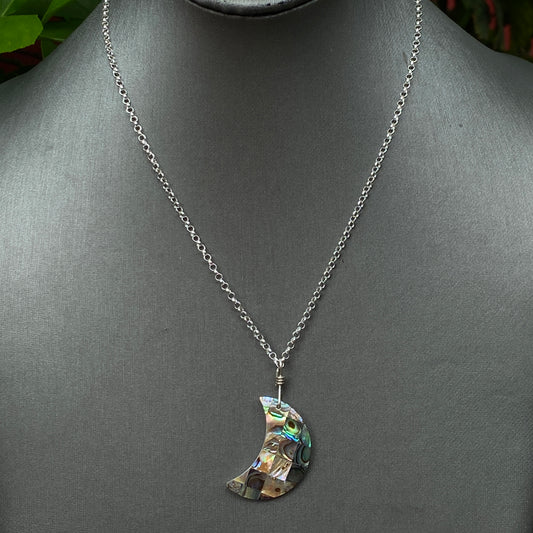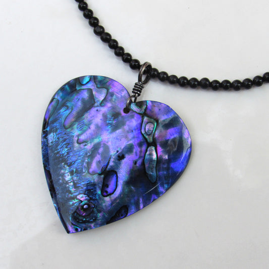 Abalone Shell Heart Pendant on Onyx beaded Necklace