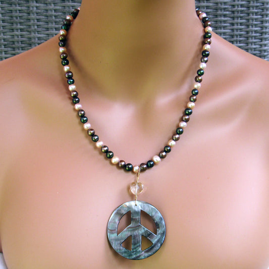 Abalone Peace Sign Hand Wrapped w/ 14 kt gf w/ Citrine Heart on Freshwater Pearls
