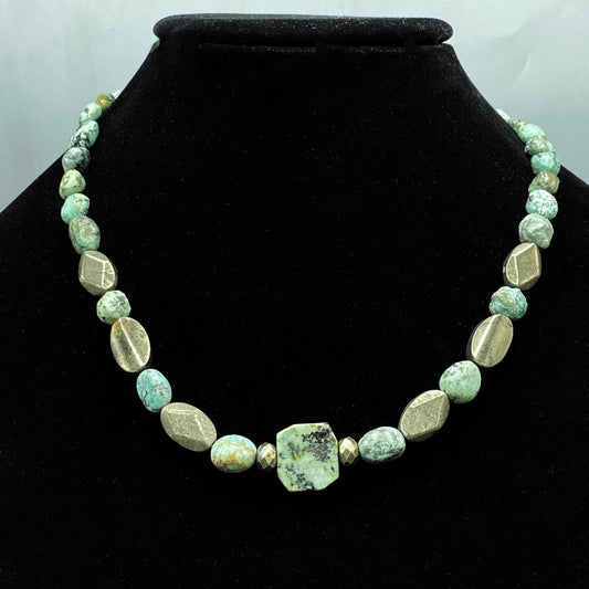 African Turquoise and Pyrite gemstone Necklace