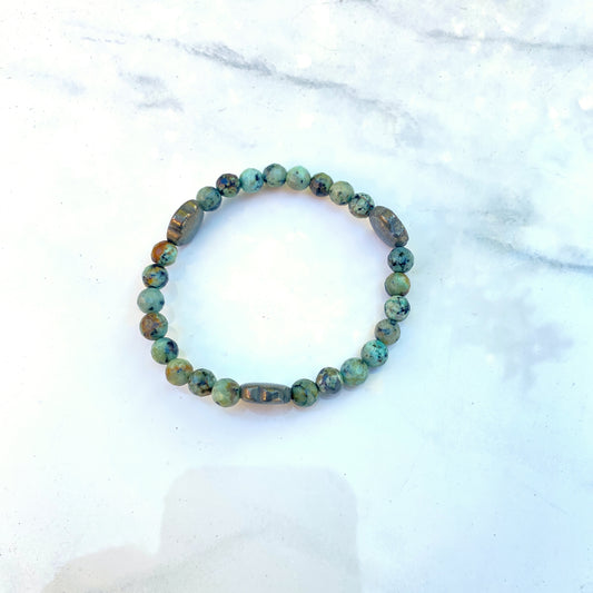African turquoise and pyrite stretch bracelet
