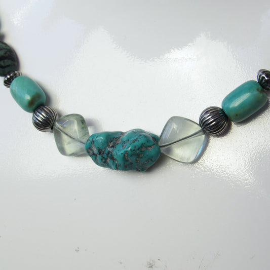 Turquoise, Fluorite gemstone, and Sterling Silver Necklace
