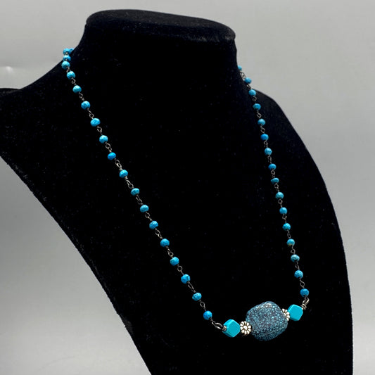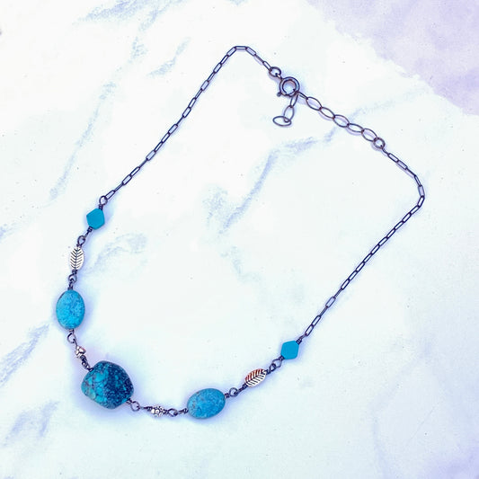 Turquoise gemstones and sterling silver Flower Necklace