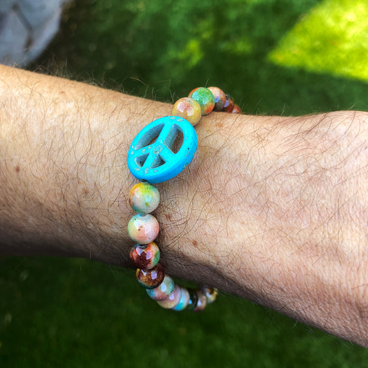 Turquoise Howlite Peace and Rainbow Jade Stretch Bracelet Men’s Sizes
