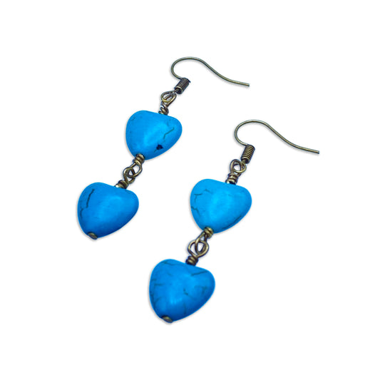 Turquoise Howlite Dangle Heart Earrings