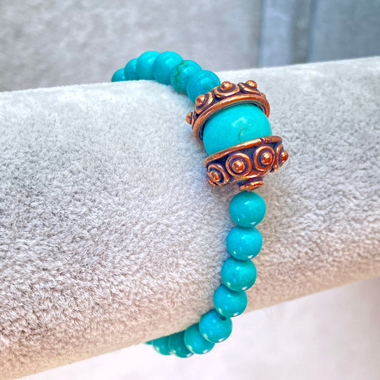 Turquoise gemstones and Copper Flower Beaded Bracelet