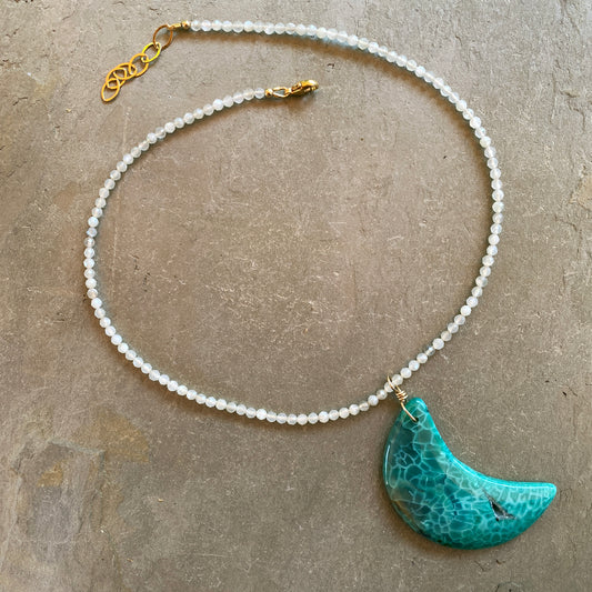 Agate Moon and moonstone Gemstone necklace with 14 kt gold fill chain