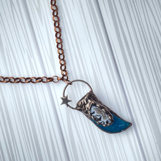 Agate Gemstone Horn and Star Wrap Around Copper plated Necklace