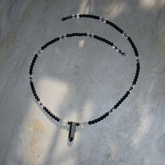 Black Diamonds, Pyrite, Onyx, Clear Quartz w/ Sterling Silver Men’s Necklace