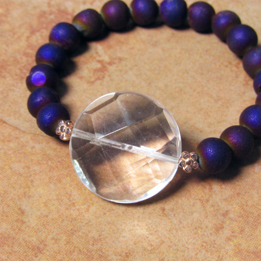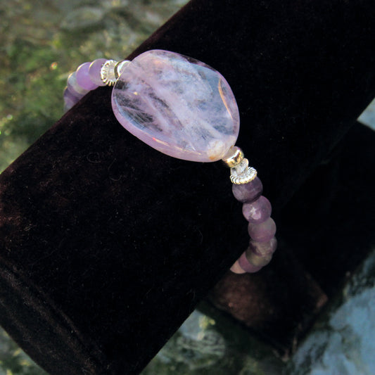 Amethyst Gemstone, Clear Quartz Flower with Accents and Sterling Silver Stretch Bracelet