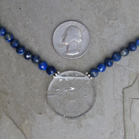 Lapis Lazuli and Clear Quartz gemstone disk Pendant necklaces