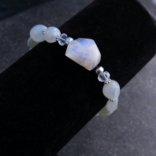 Moonstones, Clear Quartz and Sterling Silver Stretch Bracelet