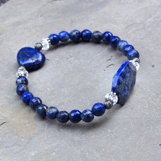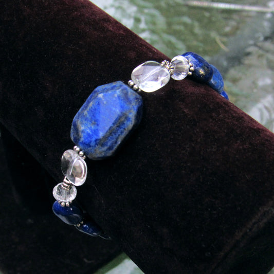 Lapis Lazuli, Clear Quartz, and Sterling Silver Stretch Bracelet