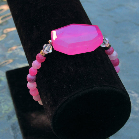 Pink Agates, Clear Quartz Heart, and 14 Kt Rose Gf Stretch Bracelet