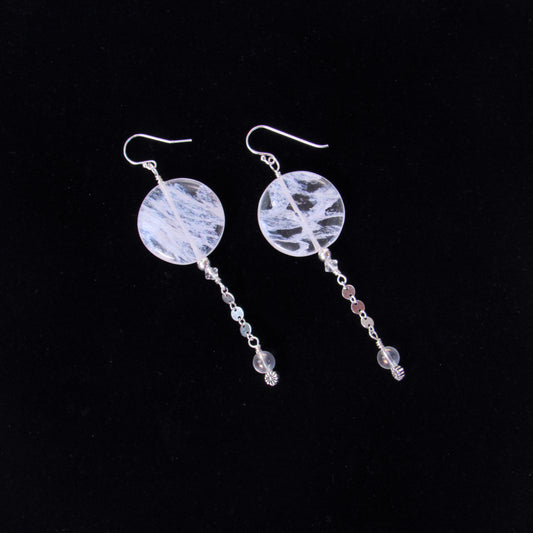 Shimmery Moonstone Gemstone, Sterling Silver, Clear Quartz, and Silver Druzy Agates