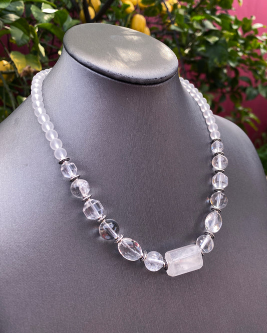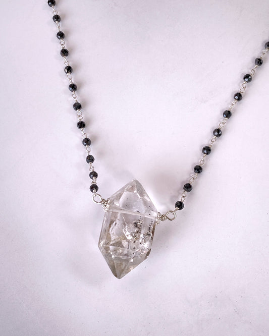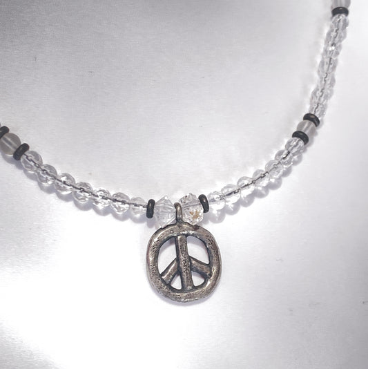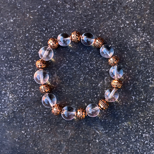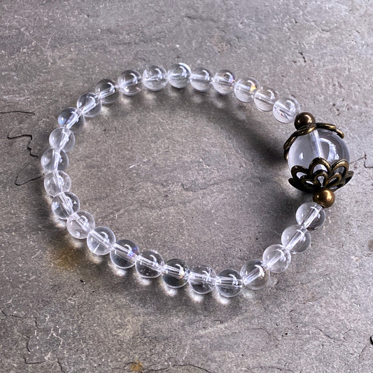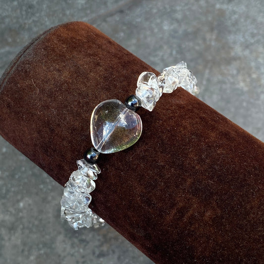 Onyx gemstones and Clear Quartz Skull stretch Bracelet