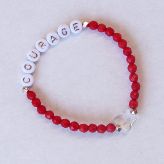 Coral, Clear Quartz, 18 Kt Gold Vermeil over Sterling Silver, “Courage” Stretch Bracelet