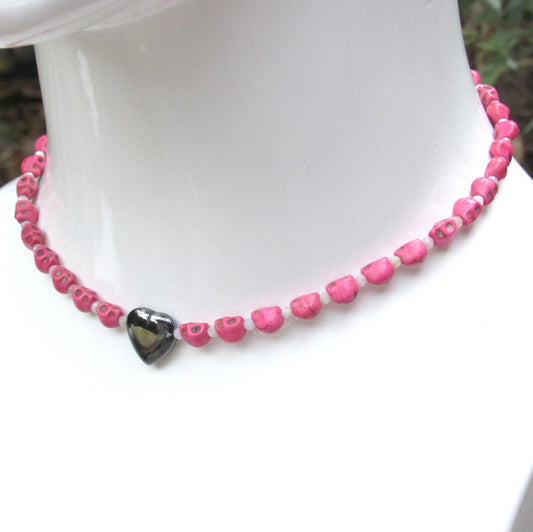 Hematite, Onyx, Amethyst, Howlite Gemstone Skull Stretch Bracelet
