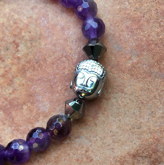 Women's "SHINE" Bracelet with Amethyst, Swarovski, and Hematite Buddha Gemstones