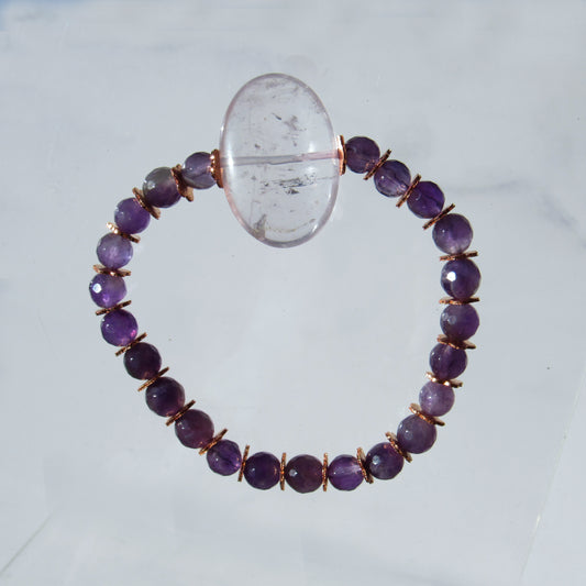 Amethyst gemstone and copper crystal beaded stretch bracelet