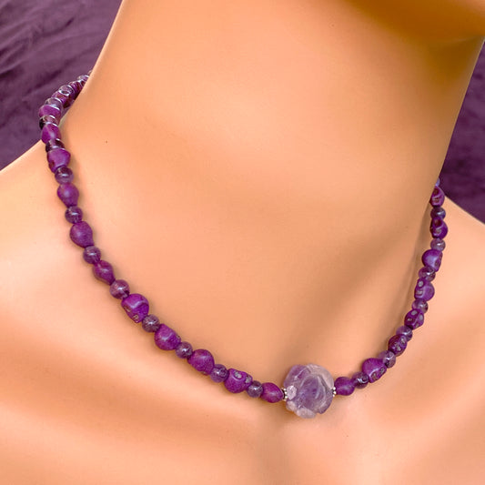 Amethyst gemstone and Howlite Skull Necklace