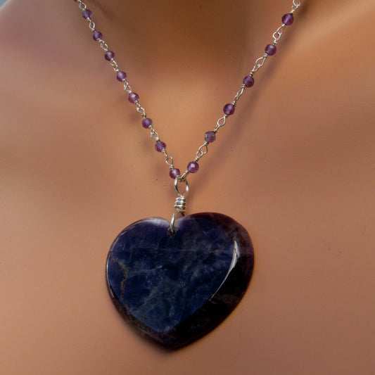 Amethyst gemstone Heart Pendant on Sterling Silver Chain Necklace
