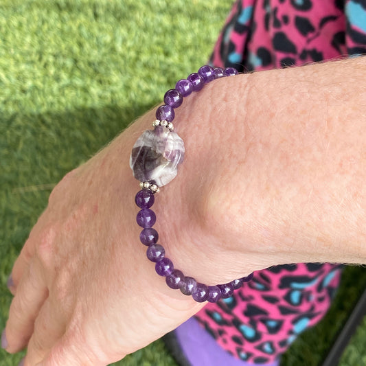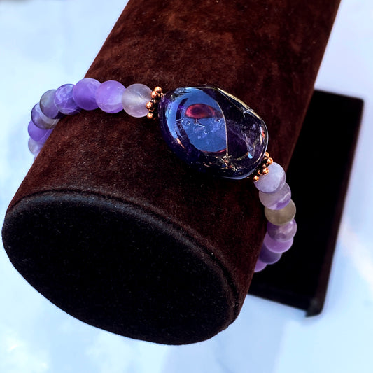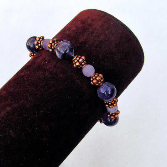Amethyst gemstone and Copper Beaded Stretch Bracelet