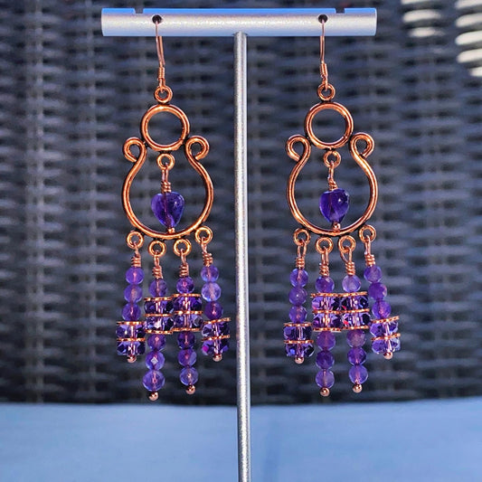 Natural Amethyst gemstone and Copper earrings