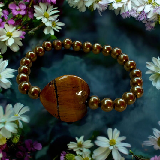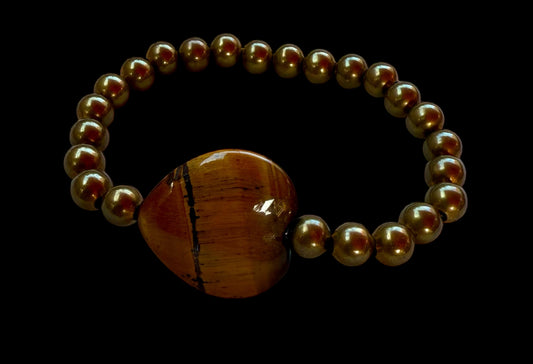 Tiger’s Eye Heart and Brass Beaded Bracelet