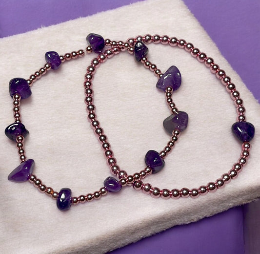 Amethyst Heart Gemstone and 14kt Rose Gold Fill Bracelet
