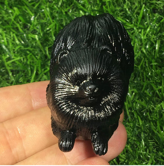 Natural Hand Carved Quartz Crystal rainbow fluorite gemstone Dog