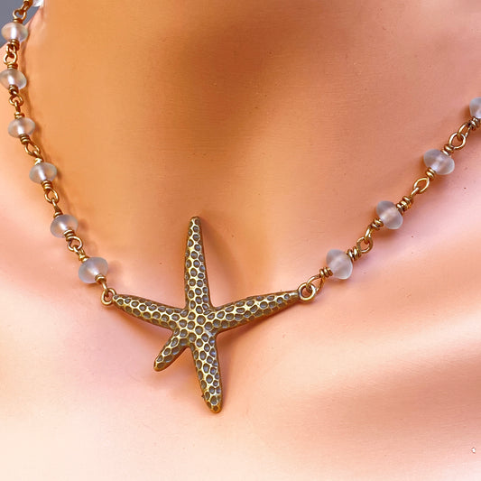 Starfish and Quartz gemstone Choker Necklace