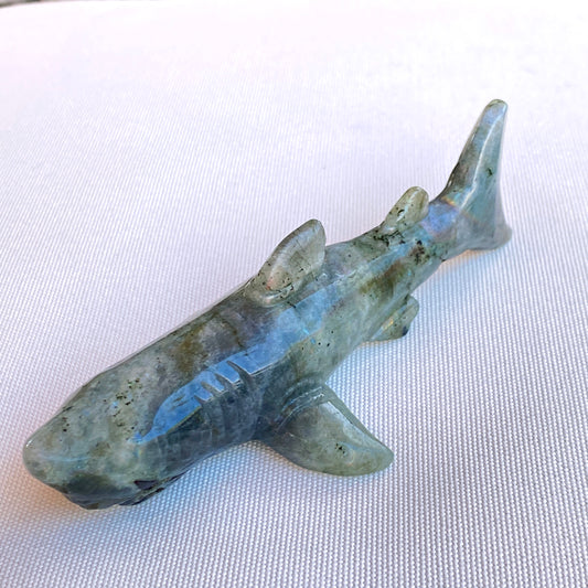 Labradorite gemstone carved Great White Shark Figurine