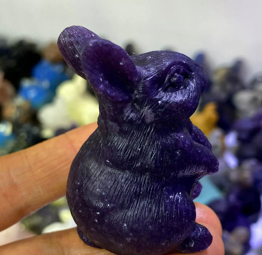 Natural Lepidolite gemstone carved Bunny Rabbit