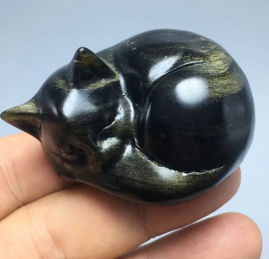 Natural Gold Obsidian Carved Crystal Kitty Figurine