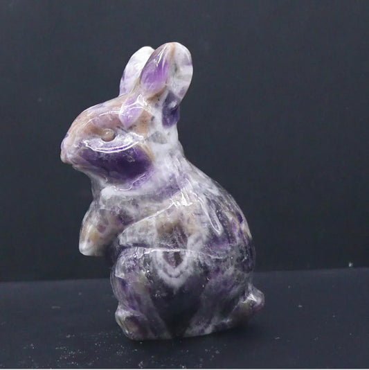 Natural amethyst gemstone bunny rabbit crystal figurine