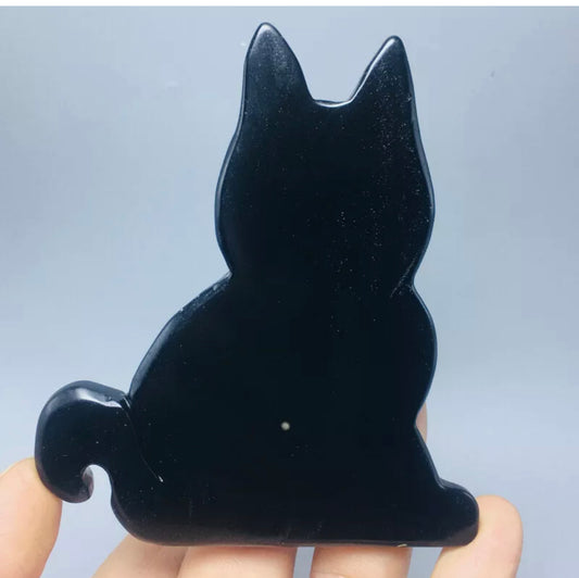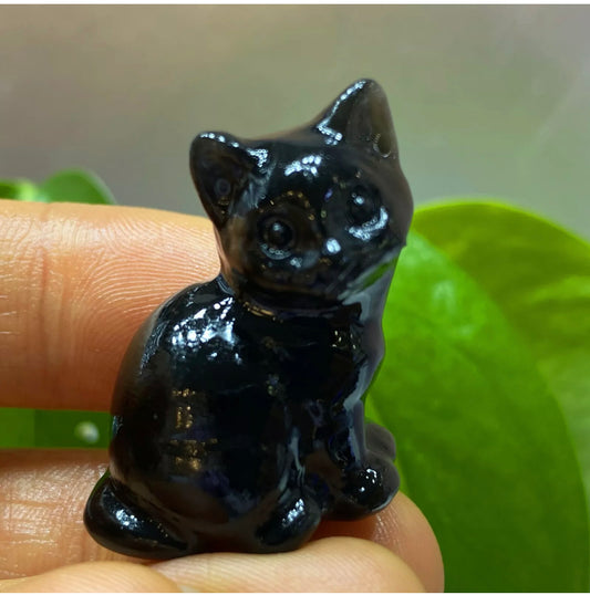 Black Obsidian gemstone awKitty Cat with stand