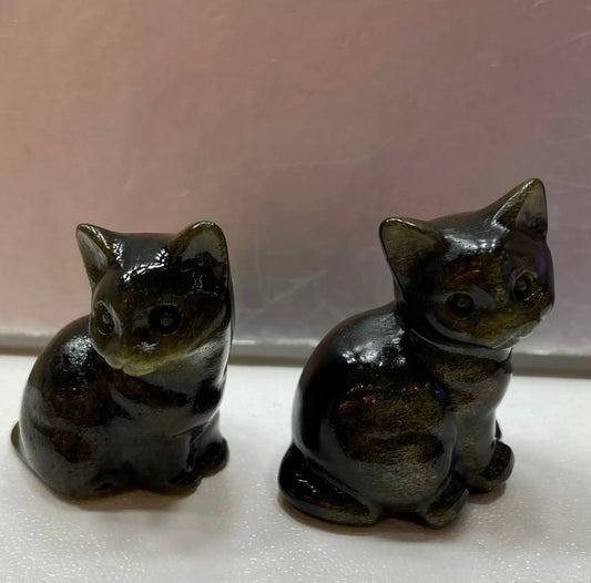 Natural Gold Obsidian gemstone Carved Crystal Kitty Figurine