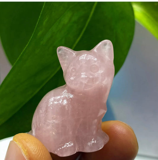 Natural Rose Quartz gemstone Kitty Cat Crystal Figurine