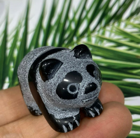 Natural Black Obsidian Panda Bears