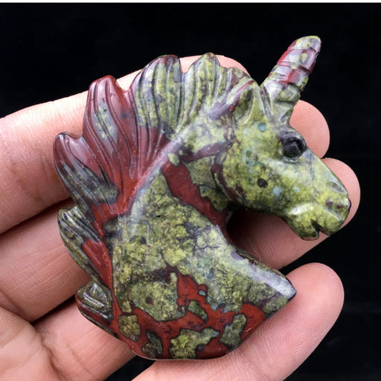 Natural Dragon Bloodstone gemstone carved Unicorn