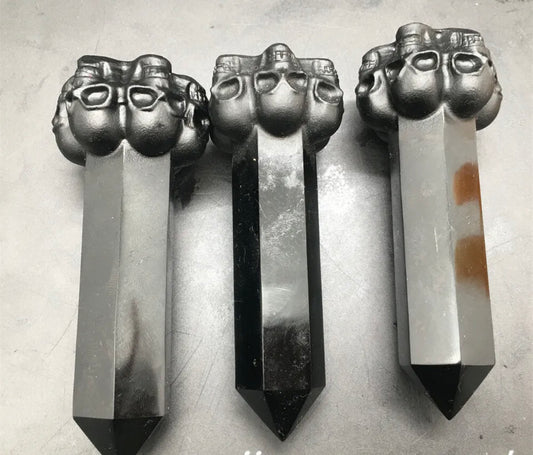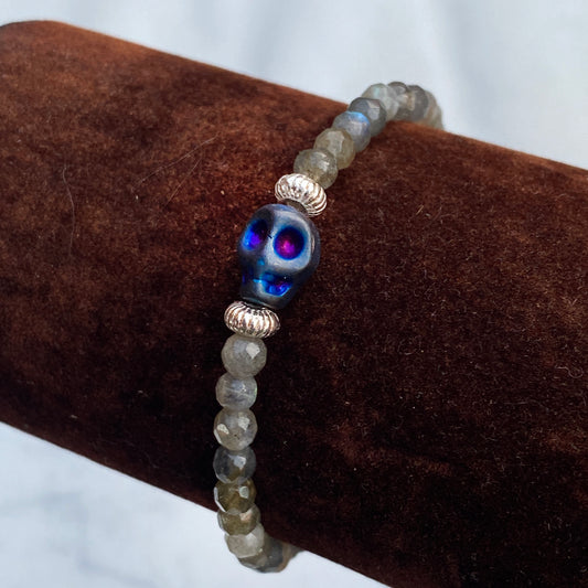Labradorite gemstones and Hematite Skull stretch Bracelet