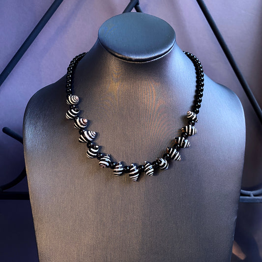 Shell, Smokey Topaz, Onyx Necklace with oxidized sterling silver