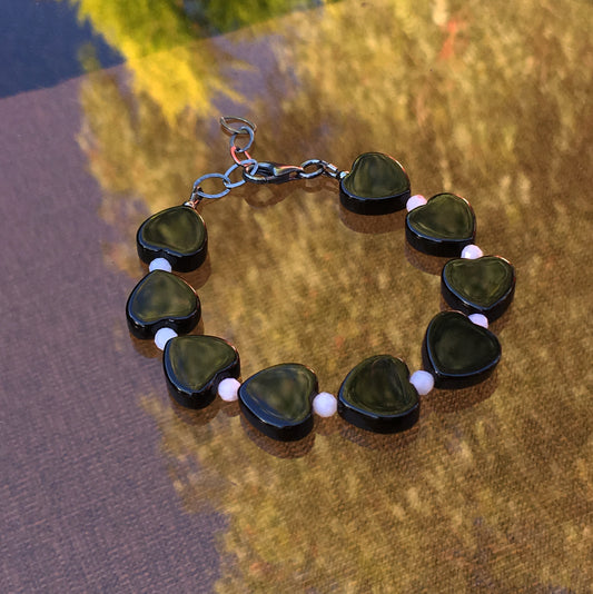 Women's Onyx Hearts & Pink Opal Gemstone bracelet